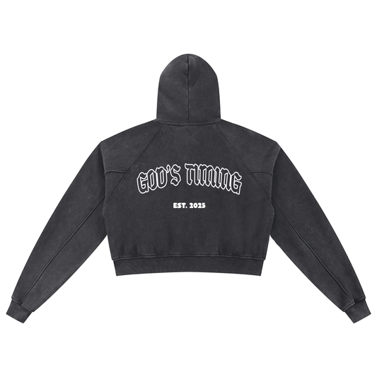 God's timing - Snow Washed Cropped Hoodie